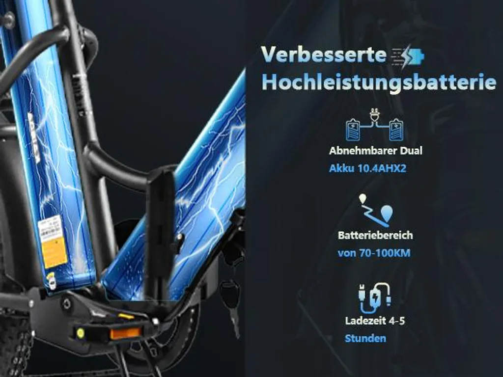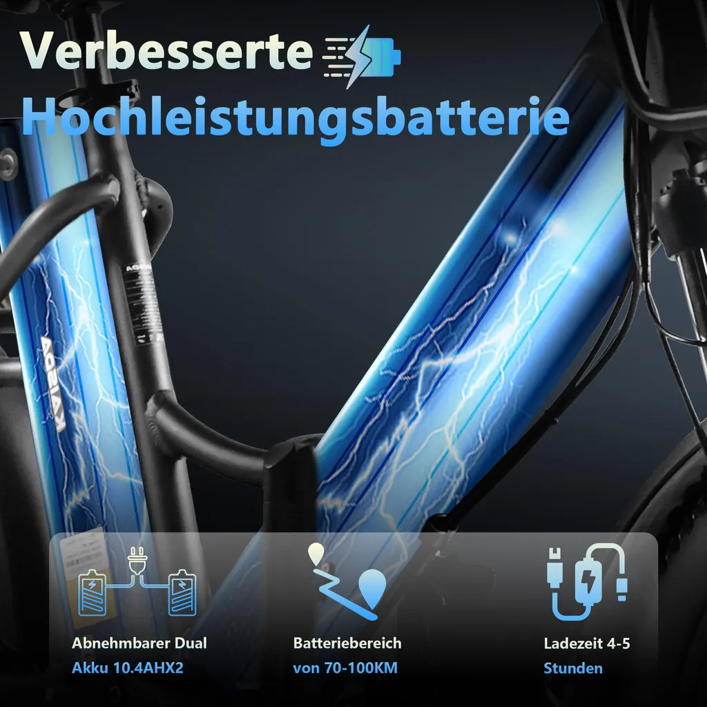 【Doppelakku-Design & Lange Reichweite】 Das E-Bike Klappbar 20 Zoll überzeugt mit einem 36V20.8Ah Doppelakku-Design, das eine beeindruckende 90KM Reichweite ermöglicht – perfekt für lange Pendelstrecken oder Wochenendabenteuer. Dank der 4-5h Schnellladung sind Sie immer einsatzbereit. Der austauschbare Akku ist ideal für Reisen, und das IPX-Wasserdicht-Design schützt zuverlässig bei jedem Wetter.