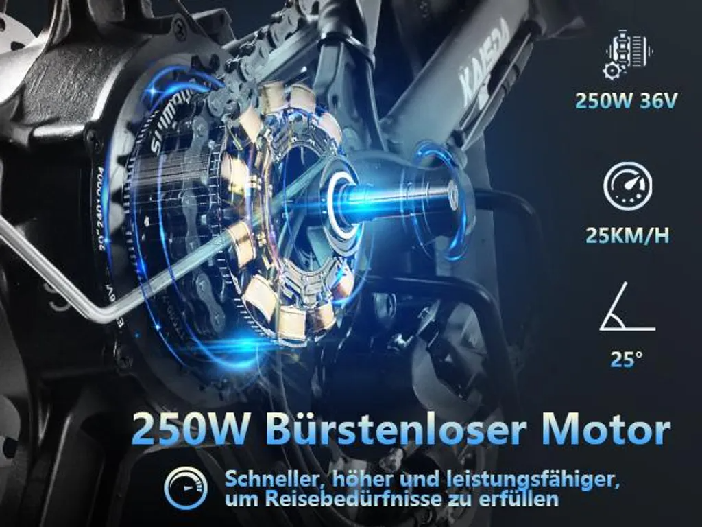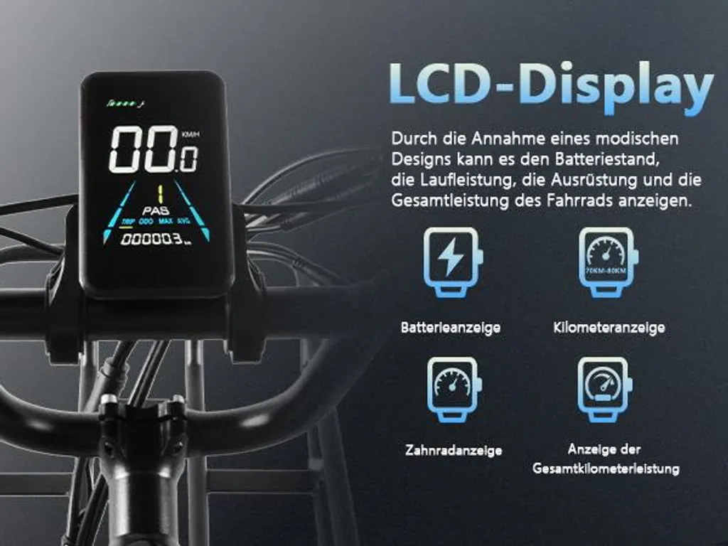 【Hochleistungsmotor & Intelligentes Display】 Der leistungsstarke 250W Motor des 20 Zoll Fatbikes meistert Steigungen bis 25° mühelos. Das LCD-Display zeigt Echtzeitdaten wie Geschwindigkeit, Akkustand und gefahrene Kilometer an. Kombiniert mit der 7-Gang Schaltung und der 150KG Belastung wird dieses E-Bike zum zuverlässigen Begleiter für Arbeit, Freizeit und Abenteuer.