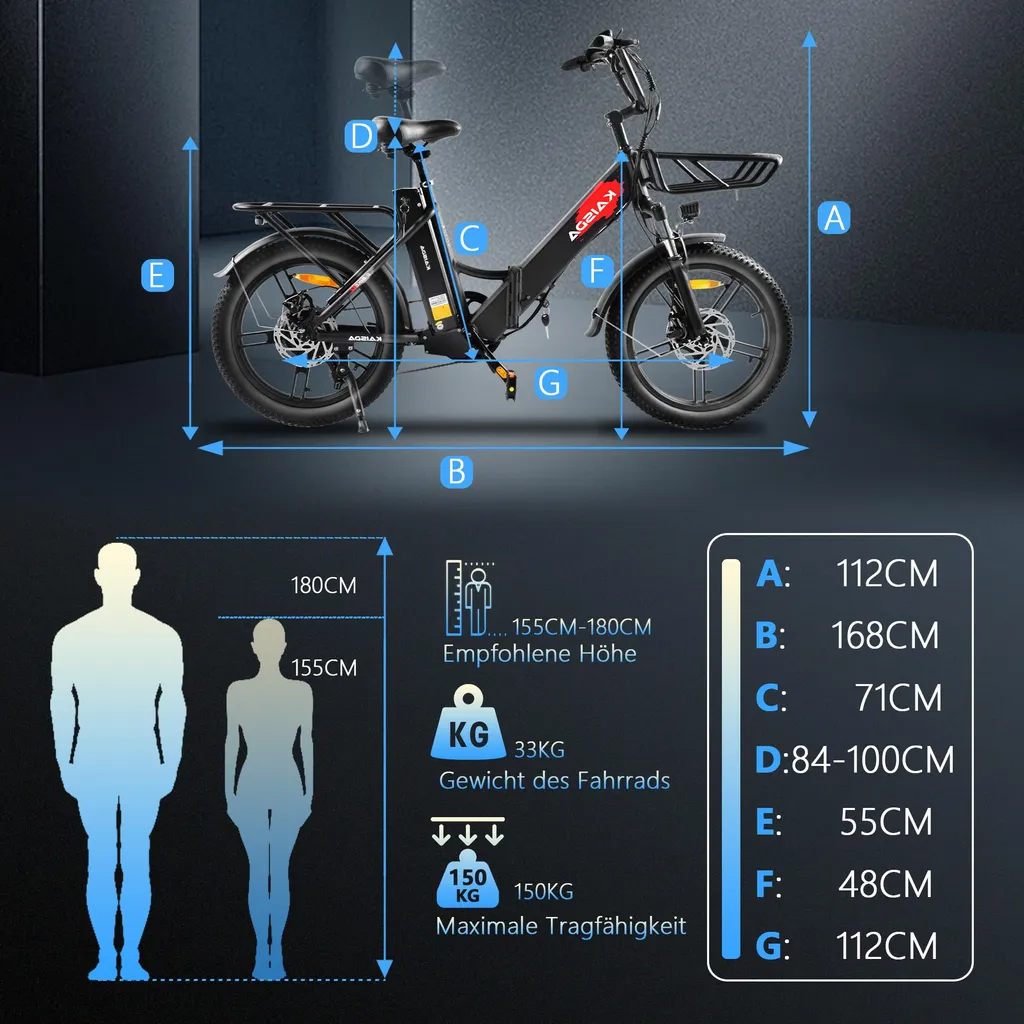 ️ 【Faltbar in 15 Sekunden – Leicht & Kompakt】 Das Faltbar-Design des E-Bikes ermöglicht ein Zusammenklappen in nur 15 Sekunden – ganz ohne Werkzeug! Der leichte Aluminiumrahmen (33KG) macht es ideal für Reisen, Camping oder die Mitnahme im Auto. Nach dem Falten misst es nur 92x46x114 cm und lässt sich platzsparend in jeder Ecke verstauen.