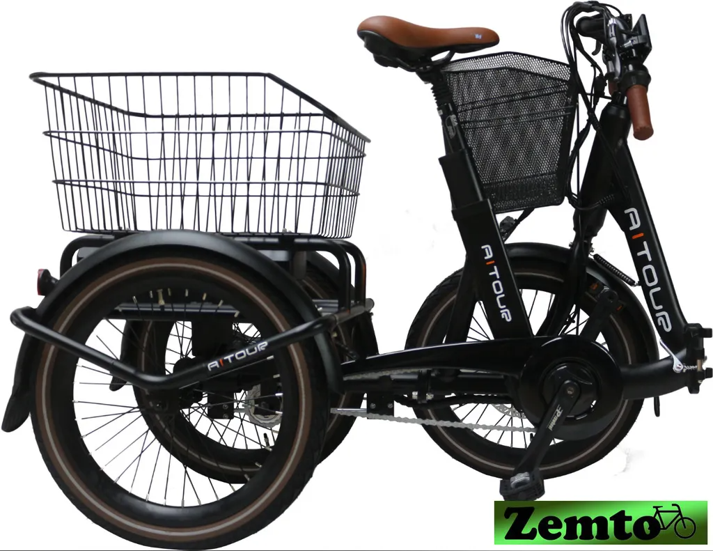 Elektro Dreirad Trike 3 Gang, Tiefeinstieg 20 Zoll schwarz, Fahrfertig, inkl. Kettenschloss und Rückspiegel