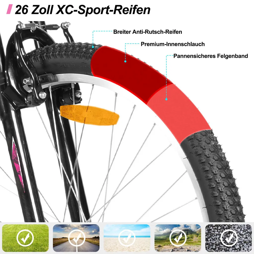 • Perfekt für Gelände & Stadt: Ob auf Waldwegen, Schotterpisten oder in der Stadt – das Hiland Damen-Mountainbike ist ein vielseitiger Begleiter für Abenteuer und den Alltag.
