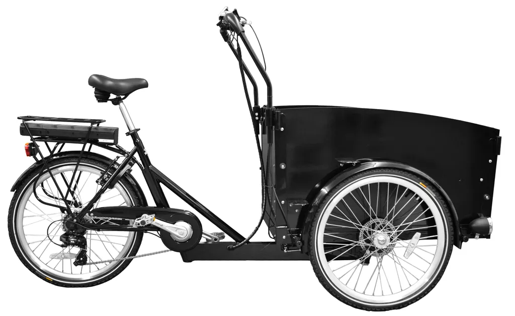 Der 250W bürstenlose Heckmotor beschleunigt Sie und das Rad auf bis zu 25km/h. Dank einer Schiebehilfe können Sie das Lastenrad auch mit Motorunterstützung schieben, falls es Ihnen mal zu schwer werden sollte. Der Akku sitzt unter dem Gepäckträger und lässt sich einfach nach hinten herausziehen. Er verbraucht so keinen wertvollen Platz in der Box und ist natürlich abschließbar. Mit dem LCD-Display haben Sie alles im Blick: Geschwindigkeit, Akku-Stand, km-Stand und mehr. Die Markenreifen von KENDA sorgen für guten Grip auf der Straße selbst bei nassem Asphalt. Shimano steuert die 7-Gang-Schaltung in bewährter Qualität bei. Bei den Felgen setzen wir auf Hohlkammerfelgen. Diese sind besonders verwindungssteif und haben eine sehr geringe Speichenbruchrate.