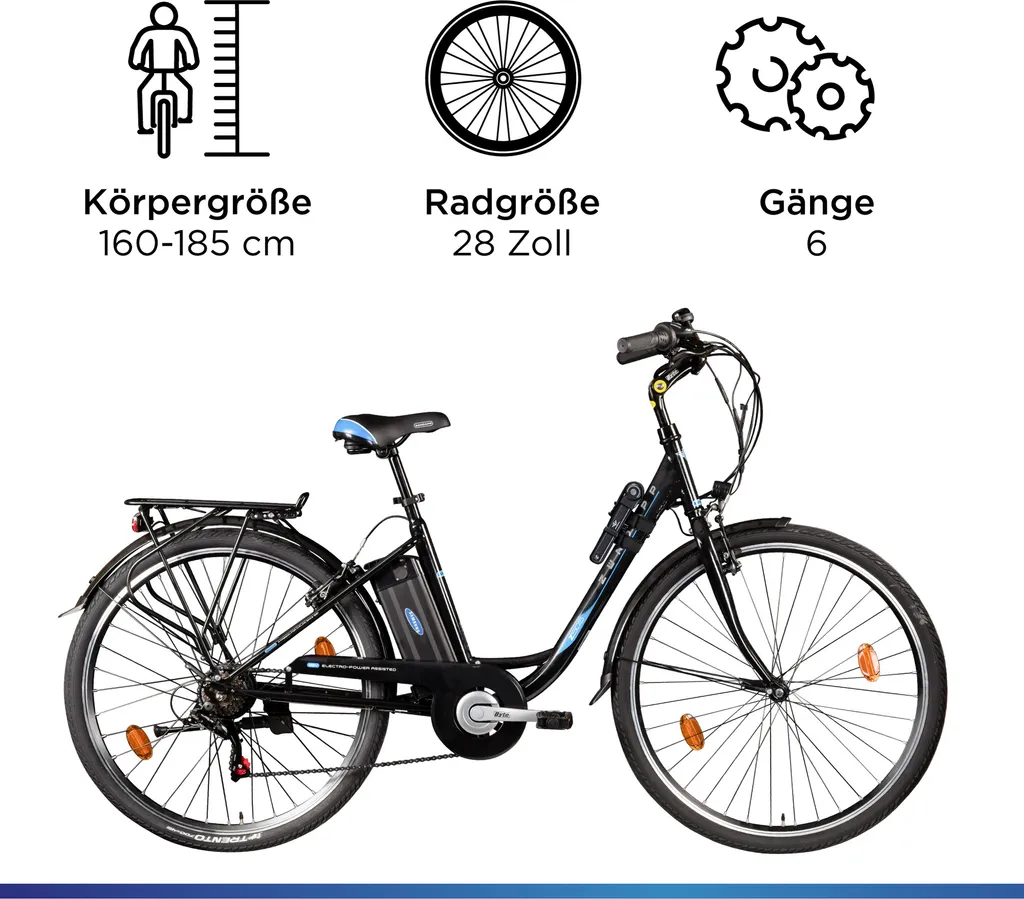 Wir empfehlen das Fahrrad Personen mit einer Körpergröße zwischen 160 und 185 cm. Nach einer kurzen Endmontage des Lenkers sowie einer Prüfung von Schrauben und Schaltung sowie Bremsen können Sie direkt losfahren.